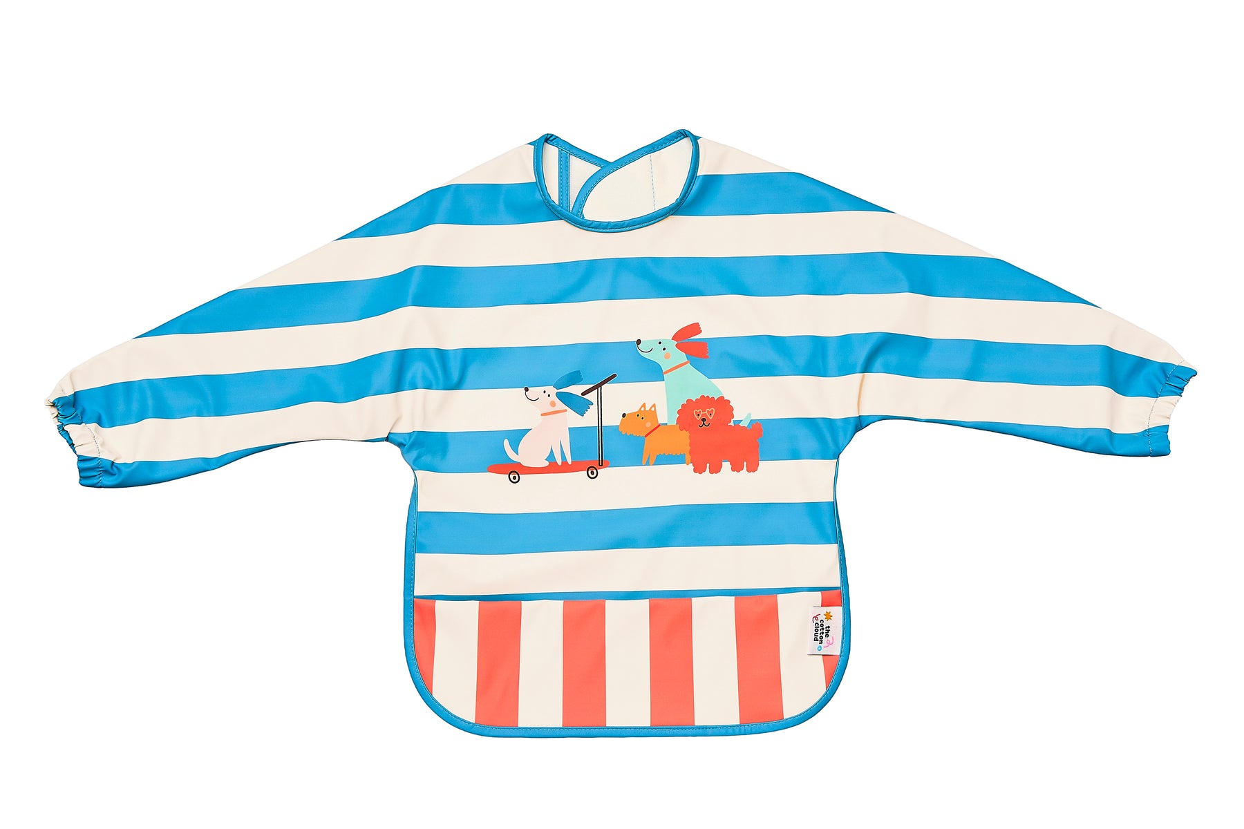 Die integrierte Auffangtasche fängt kleine Missgeschicke auf, während der elastische Bund für einen bequemen Sitz sorgt. Abwischbar, maschinenwaschbar und unkompliziert – so, wie Kindersachen sein sollten.